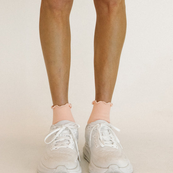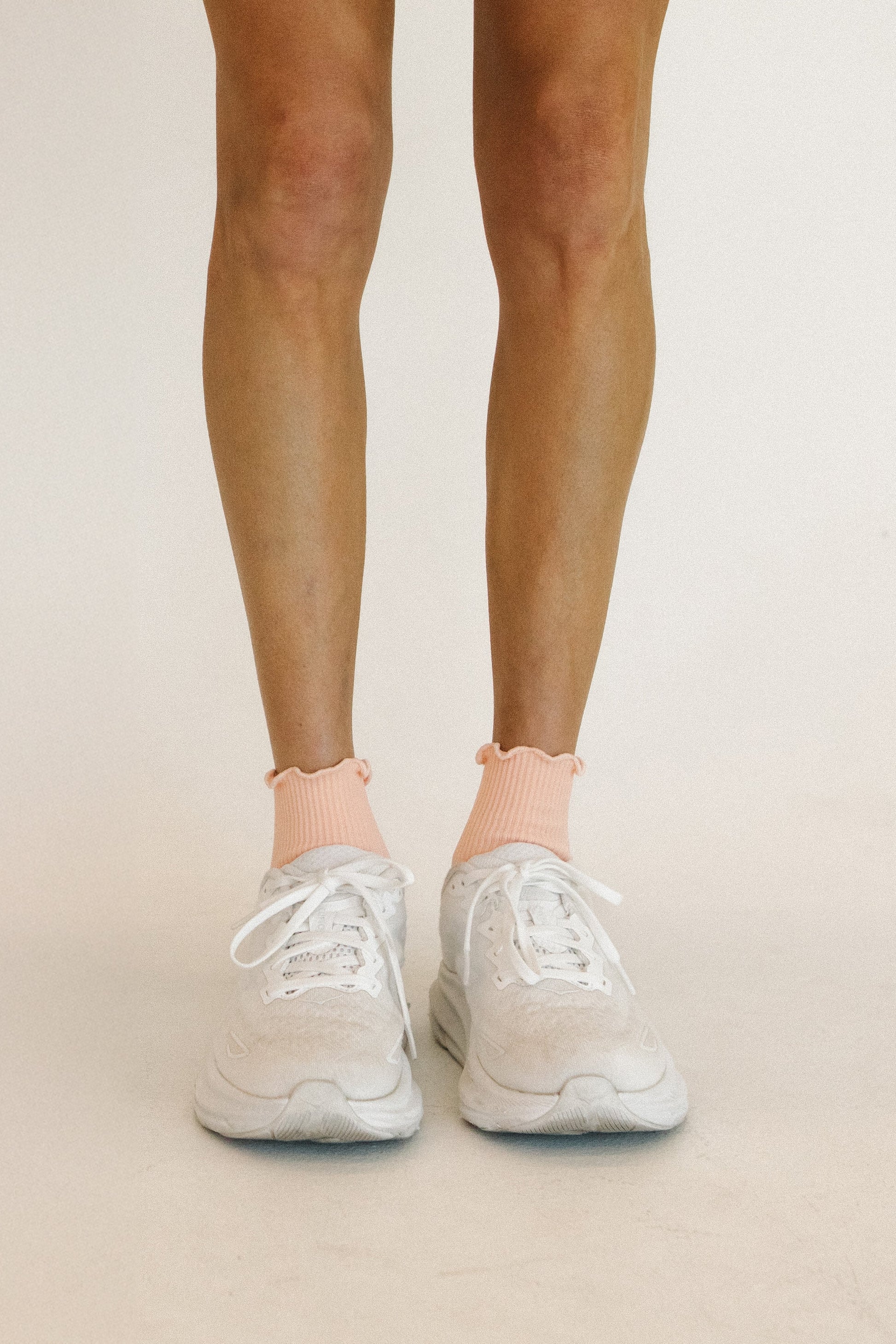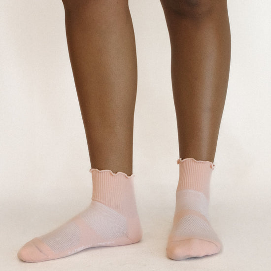 It has targeted compression along arch and top of foot, anatomical design, an anti-bunching toe box, and sweat wicking fabric.